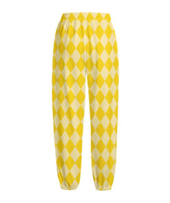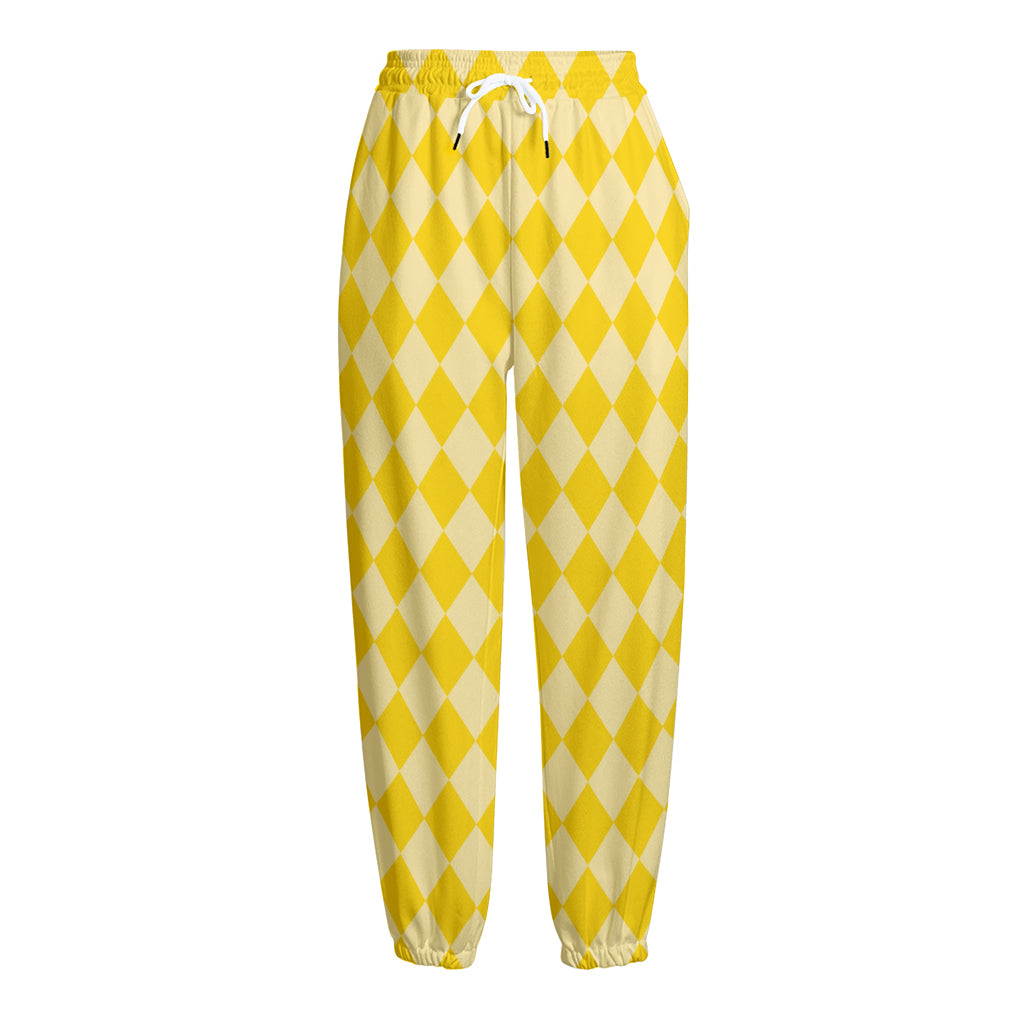 Yellow Harlequin Pattern Print Fleece Lined Knit Pants