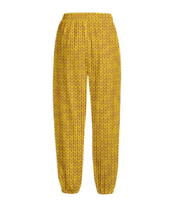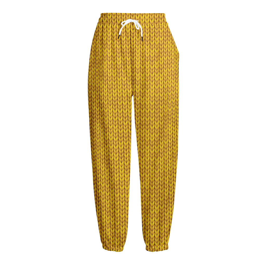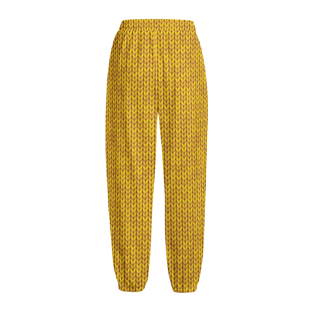 Yellow Knitted Pattern Print Fleece Lined Knit Pants