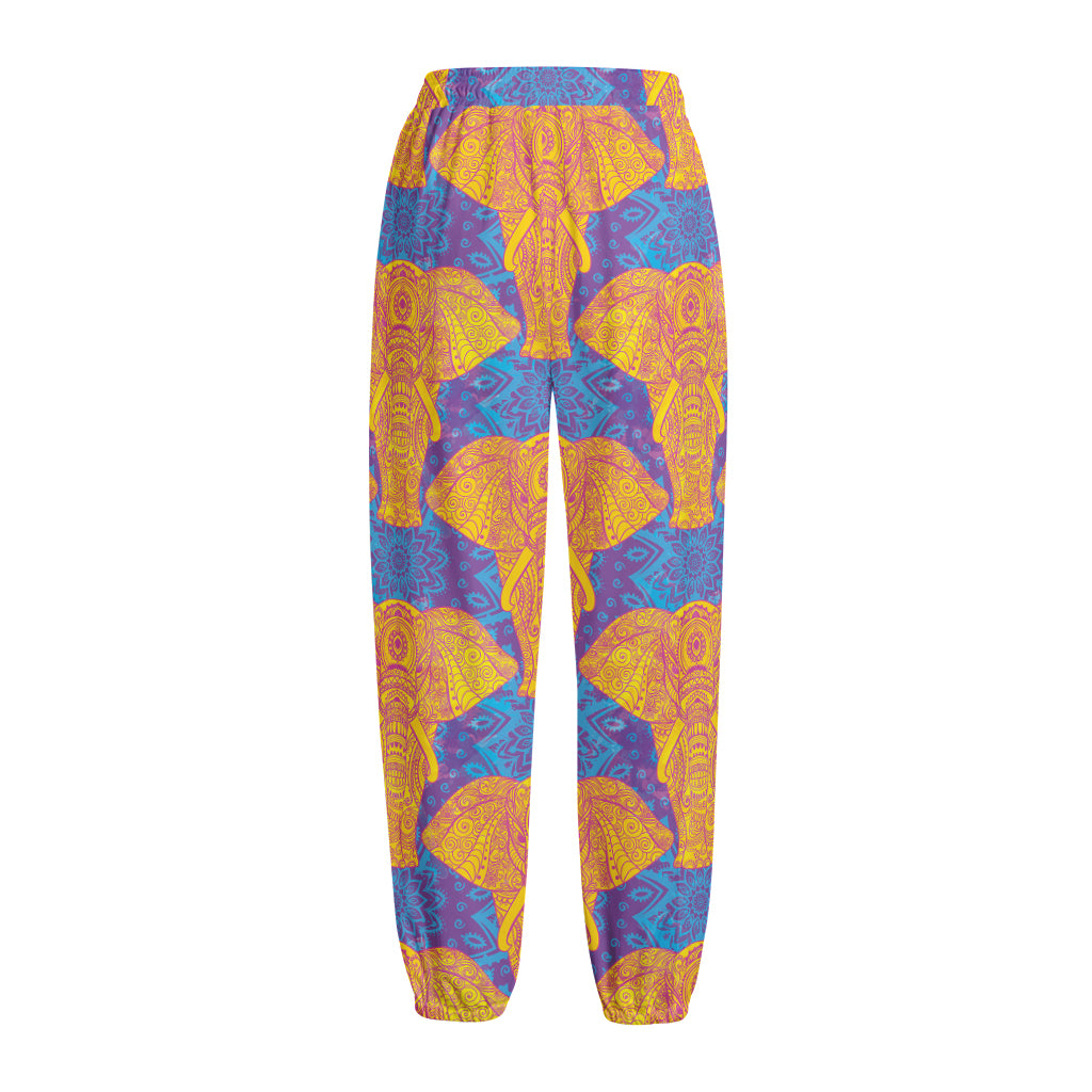 Yellow Mandala Elephant Pattern Print Fleece Lined Knit Pants