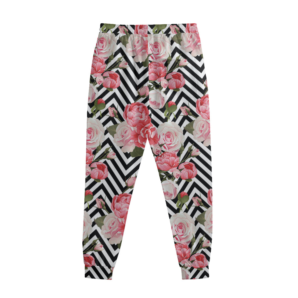 Zigzag Peony And Rose Pattern Print Sweatpants